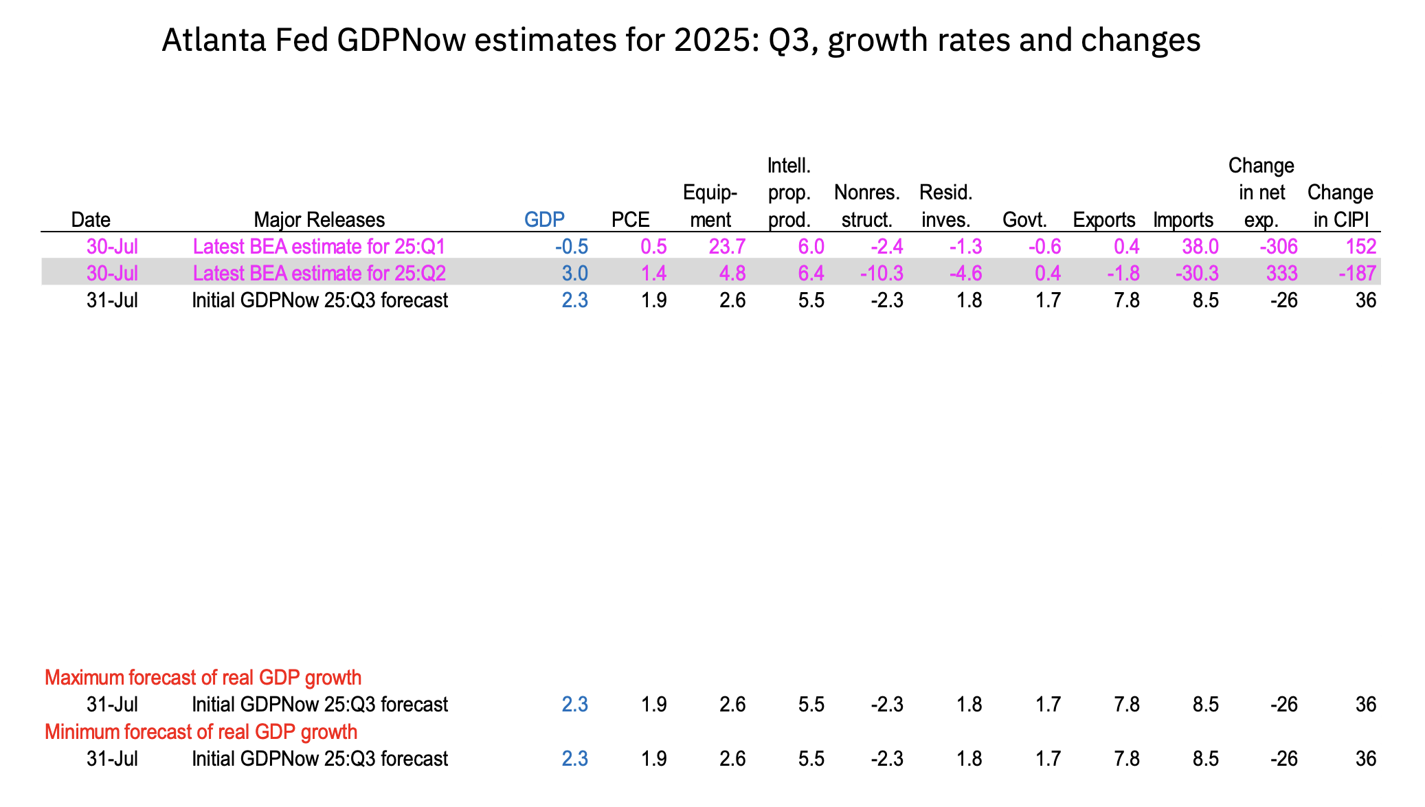 교수님이 만드신 표가 좀 오류가 있는 거 같아서(짧은 시간에 만드시느라 그러신 듯요^^;;) 아예 링크해주신 애틀랜타 연은에 들어가서 캡처해왔습니다. 여기 두번째 줄이 각 항목별 경제성장률 기여도인데, 3% 중 소비가 차지하는 비중은1.4% 증가에 그친 반면 수출이 1.8%, 수입이 30.3%가 감소하여 3%의 경제성장률이란 수치가 나온 것으로 보입니다.