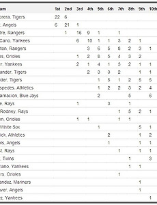 MVP8 [TEX] 마자라 MVP 가치? 레인저스, 전문가들이 거들다 (Mazara MVP worthy? Rangers, pundits weigh in) [원문 : https://www.mlb.com/news/rangers-nomar-mazara-earning-early-mvp-talk/c-266875268] 며칠 전에 나온 우리 노마의 기사... SNS 하는 거라곤 페이스북과 이 블로그가 다라 몰랐는데 지난 11월에 빌 제임스가 트위터로 관련 폴을 하나 세웠나보다. 뭐 결과야 부정적이었으나, 아직 녀석의 브레이크아웃이 실현된 것이 아니라서 당연한 결과였고, 단지 이 녀석의 MVP 수상 혹은 Hall of famer가 될 수 있을지 등의 예측을 혼자만 이렇게 한지 알고 있었는데 전문가 중에 나와 비슷한 생각을 한 사람이 있어서 좀 놀랍고 기분이 좋았다. 거의 20년동안 야구를 보면서 내 응원팀에서 수퍼 스타가 될 것 같은 선수가 딱 2명이었는데 한 명은 .. 2018. 2. 25. [MLB] 2015 MLB Awards Result (3) ★ 2015 BBWAA Most Valuable Player Result☆ NL Winner- 2015 NL MVP Result Table1st : Bryce Harper of Washington Nationals (420)2nd : Paul Goldschmidt of Arizona Diamondbacks (234)3rd : Joey Votto of Cincinnati Reds (175)4th : Anthony Rizzo of Chicago Cubs (162)5th : Andrew McCutchen of Pittsburgh Pirates (139)☆ AL Winner- 2015 AL MVP Result Table1st : Josh Donaldson of Toronto Blue Jays (385)2nd :.. 2015. 11. 20. [2014 KBO] 시대를 앞서간 MVP Nominee - 강정호(Kang Jung Ho) 이 글을 써나가기에 앞서 이번 2014 한국프로야구 MVP 수상자인 서건창 선수 수상에 대해 폄하할 의도는 전혀 없으며 필자 역시 충분히 받을만한 자격이 있다고 여기고 있다. 그러니 불필요한 오해가 없길 바라고, 그저 한 야구팬의 의견이라고만 여기면 될 듯 싶다. MVP(Most Value Player)는 말 그대로 일정 기간동안의 최고의 가치를 지닌 선수라는 의미이고, 그 기준은 천차만별일 수 밖에 없을 것이다. 특히나 한국 야구의 역사는 기껏해야 30여년밖에 되지 않았기때문에 타 리그에 비해 신기록에 대한 목마름이 더 간절할 수 있을 것 같고, 다소 감정적인 부분(아무래도 한국에 '情' 이란 문화가 있으니 더더욱)도 평가 대상에 고려될 수도 있어보인다. 어찌보면 우리 나라의 문화적인 정서가 이렇게 형.. 2014. 11. 20. [KBReport 스크랩] 2014시즌 KBO BEST 11 [출처 : http://www.kbreport.com/statBuzz/detail?seq=59] 솔직히 정호팬이라서가 아니라 올시즌 최고의 선수는 강정호가 맞다고 생각한다. 아무래도 난 변화를 잘 받아들이는 사람이라 그런지 세이버 스탯을 많이 참조하고 있고, MLB도 클래식 스탯보다 세이버 스탯에 더 가중치를 두고 있기 때문이다. 이를테면 타율은 안타와 홈런을 같은 가치로 보고, 투수의 방어율에는 그 팀의 수비적인 능력과 운이 작용하기도 하는 등 클래식 스탯은 그 가치를 제대로 평가하고 있지 못한다. 어쨌든 지금은 시간이 없어서 길게 못 쓸 듯 하고, 아마 추후에 올시즌 MVP와 세이버 스탯에 대해 글을 써볼 것 같다. 요즘 시간나면 구글링을 좀 하면서 정호가 MLB에 진출할 수 있는지를 체크하고 있는데.. 2014. 10. 30. [파울볼 스크랩] 2012 파울볼 어워드 - MVP MVP Most Valuable Player 1st 2nd 3rd 불멸의양신나이트는 팬들의 아드레날린을 순간적으로 급상승시키는 유형의 선수는 분명 아니다. 크게 포효하지도 않고, 그저 무심한 듯 시크하게 조용히 이닝을 정리하고 마운드를 내려오는, 매우 심심한 선수다. 그래서인지 하이라이트 프로그램에서도 몇 장면 안나온다. 그는 성적으로 말할뿐이다. 내가 얼마나 좋은 투수인지 아느냐고. 박병호 역시 MVP에 꼽히기에 충분한 선수이고, 삼성 우승의 절대 명제인 이승엽도 자격은 넘친다. 그렇지만 고독한 에이스 나이트의 앞에 서기에는 결코 충분치 않다. 브랜든 나이트, 그가 올해 최고의 선수다. DinosNu팀 승리에 가장 기여도가 높은 선수는 장타를 많이 치는 선수라고 생각한다. 박병호는 홈런 개수가 김태균의.. 2014. 6. 12. [MLB] 2012 Major League MVP - 2012 American League MVP - [AL 득표현황] [득표 100점 이상자 포함 스탯] 역시 예상대로 AL는 디트로이트 타이거즈의 미구엘 카브레라가 MVP 수상... AL 45년만의 트리플 크라운 수상자로서 가장 많은 1위표를 받으며 괴물 신인 마이크 트라웃을 큰 점수차로 제쳤다. 일단 득표수 100점 이상인 선수들만 나오게끔 캡처했고, 순위는 OPS 기준이다. 타율 .330 / 홈런 44개 / 139타점과 OPS 모두 1위이며 가장 많은 타석에 들어서고, 시즌 205개의 안타를 기록, 이 부분도 1위이다.마이크 트라웃도 대단했지만 역시 미기를 제치기는 좀 힘든 성적이었던 듯~~~ - 2012 National League MVP - [ NL 득표현황 ] [ 득표수 100점 이상자 포함 .. 2014. 6. 12. [넥센 히어로즈의 영웅] 2012년 KBO 최고의 투수, 내 마음속의 MVP - 브랜든 나이트 바야흐로 야구와 함께 울고 웃었던 시간도 벌써 5113일, 즉 14년이란 시간이 흘러가고 있다.교복을 입고 나름 무거운 세상의 짐을 짊어진 채로 TV 앞에 앉아 그들이 이기기를 간절히 바라는 마음으로 응원했던 그 순간이 아직도 기억에 생생한데 어느덧 그들은 아이의 아버지가 되었고, 내 자신조차도 머리가 굵어진 사회 구성원의 한 일원으로서 이렇게 살아가고 있다는 사실이 놀랍기만 하다.그렇게 오랫동안 '야구' 라는 걸 보고, 그것을 제대로 배우고자 노력해왔지만 아직도 그 심오한 의미를 반도 깨우치지 못하고 있는 걸까. 다만, 조금씩 조금씩 인생과 